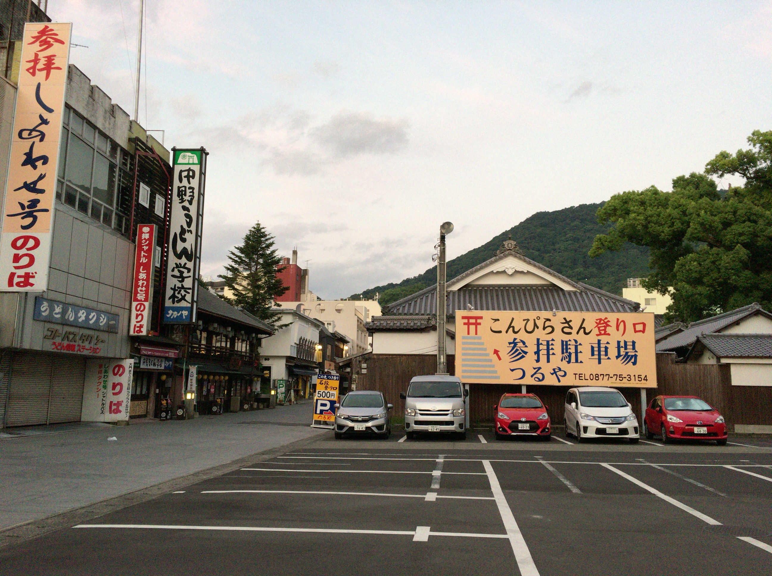 琴参閣を出発し右手側に行くと、こんぴらさんの参拝駐車場が見えてきます。