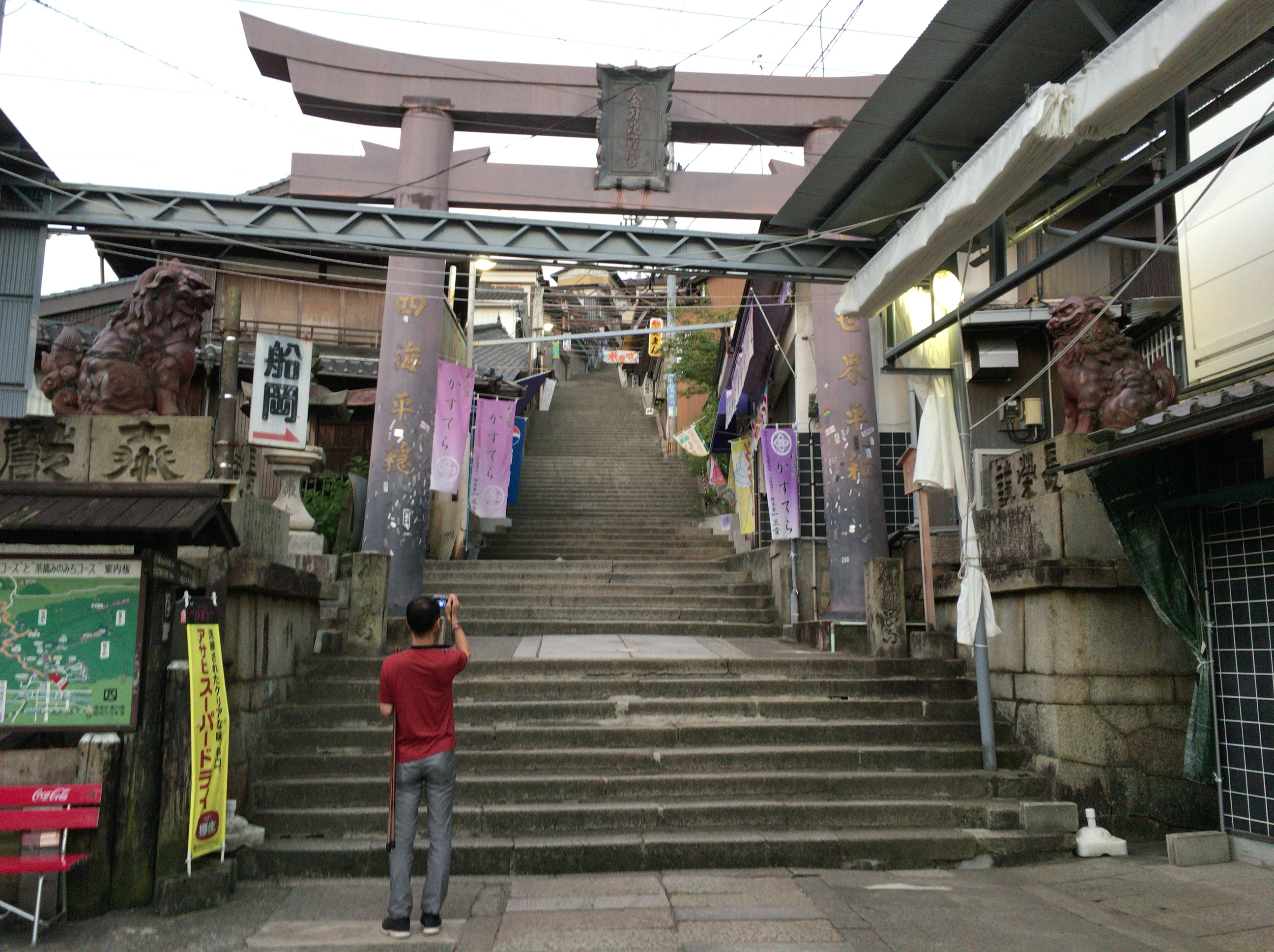 この階段からスタートですね。早朝なのにジョギングして上る人がいます。この人たちは中段まで登ってお参りしたら帰る人たちがほとんどです。ですが、ぼくは最奥までいきますよ!